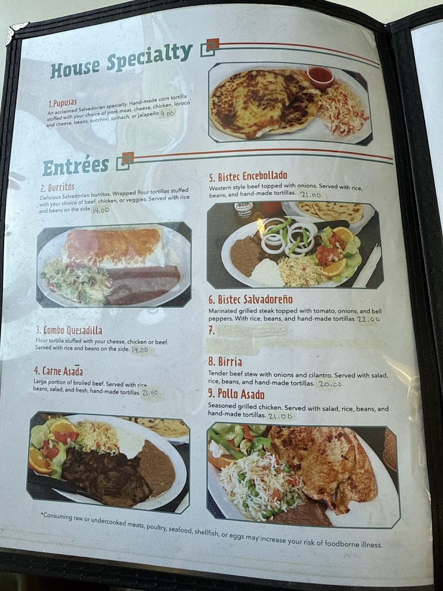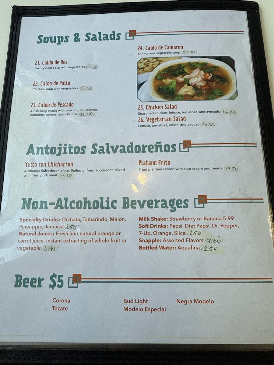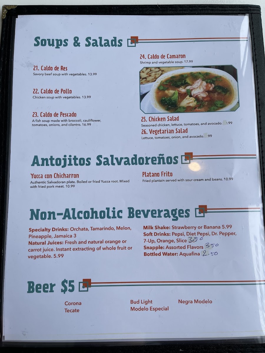 The Tropical Salvadoreño Restaurant Menu offers a vibrant and flavorful journey through the heart of Salvadoran cuisine. From the moment you take a seat, you’ll notice a delightful range of dishes that bring a taste of El Salvador right to your plate. Whether you’re craving a hearty pupusa stuffed with cheese and pork or a fresh, zesty ceviche to kick off your meal, the menu is packed with options to suit every palate. The options are crafted using fresh ingredients, each bite offering a unique combination of textures and spices that reflect the rich culture and traditions of El Salvador. Whether you're enjoying a sizzling carne asada or savoring the comforting warmth of a homemade sopa de mariscos, there's something for everyone. At Tropical Salvadoreño, every dish tells a story, making it more than just a meal - it's an experience.
